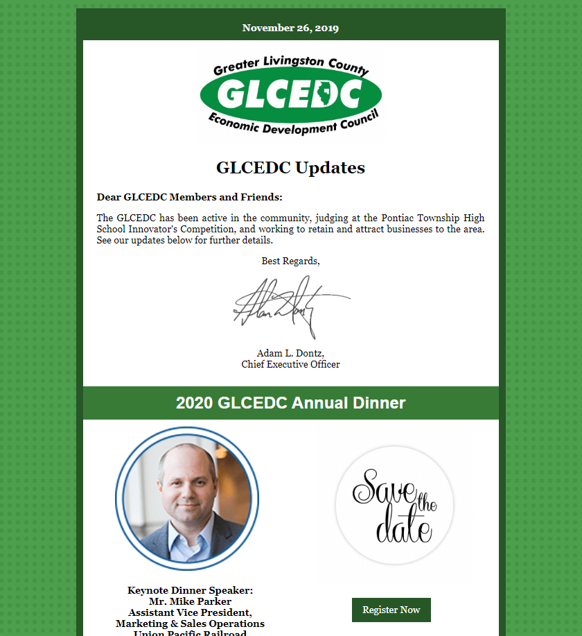 The GLCEDC has been active in the community, judging at the Pontiac Township High School Innovator’s Competition, and working to retain and attract businesses to the area. See our updates below for further details…